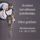 Avaimet turvalliseen työelämään. - Siksi Grafinet. Jäsenkampanja 1.8.-30.11.2023