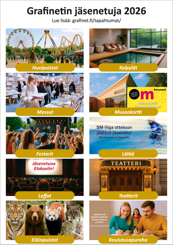 Grafinet järjestää vuosittain useita hyödyllisiä kursseja, koulutuksia ja tapahtumia joihin jäsenenä voit osallistua.