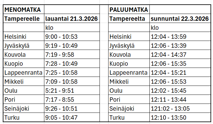 Kokouksen etäosallistujille lähetetään osallistumislinkki ilmoittamaansa sähköpostiosoitteeseen. Aikataulu Ulkopaikkakuntalaisille, jotka osallistuvat oheisohjelmaan, varataan majoitus kahden hengen huoneissa. Omavastuu on 50 euroa ja se sisältää osallistumisen kokoukseen, lounaan, oheisohjelman, ulkopaikkakuntalaisten majoituksen ja matkat Grafinetin matkustusohjeen mukaisesti. Sitova ilmoittautuminen torstaihin 26.2.2026 mennessä ilmoittautumislomakkeella. Jäsennumero löytyy mobiilijäsenkortista. Vuosikokouksessa noudatetaan Grafinetin matkustus-, osallistumis- ja peruutusehtoja. Uuden hallituksen järjestäytymiskokous pidetään huhtikuussa. Tervetuloa vuosikokoukseen, |
